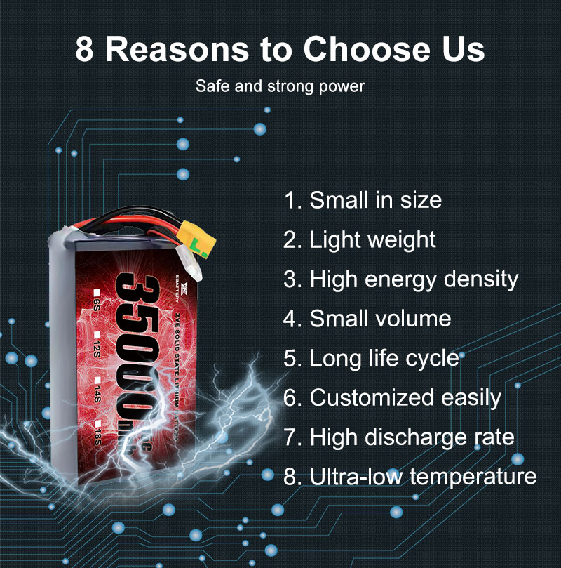 Освен това ще предоставим висококачествени батерии, катоПроизводител на едро 4.45V полутвърдотелна батерия 35000mah36000mah 35ah литиево-йонни батерии 6S7s12s20s пакет бърза доставка, за да отговори на вашите нужди.