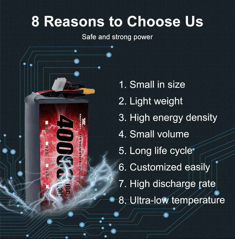 Също така, ние предлагамеТърговия на едро Zye 3s 4s 6s 40000mah 44000mah 44ah 40ah12s24s твърд щатски батерия ултра светлина и устойчив на ниска температура -40, гарантирайки, че имате достъп до модерни, високоефективни батерии, предназначени за екстремни условия.