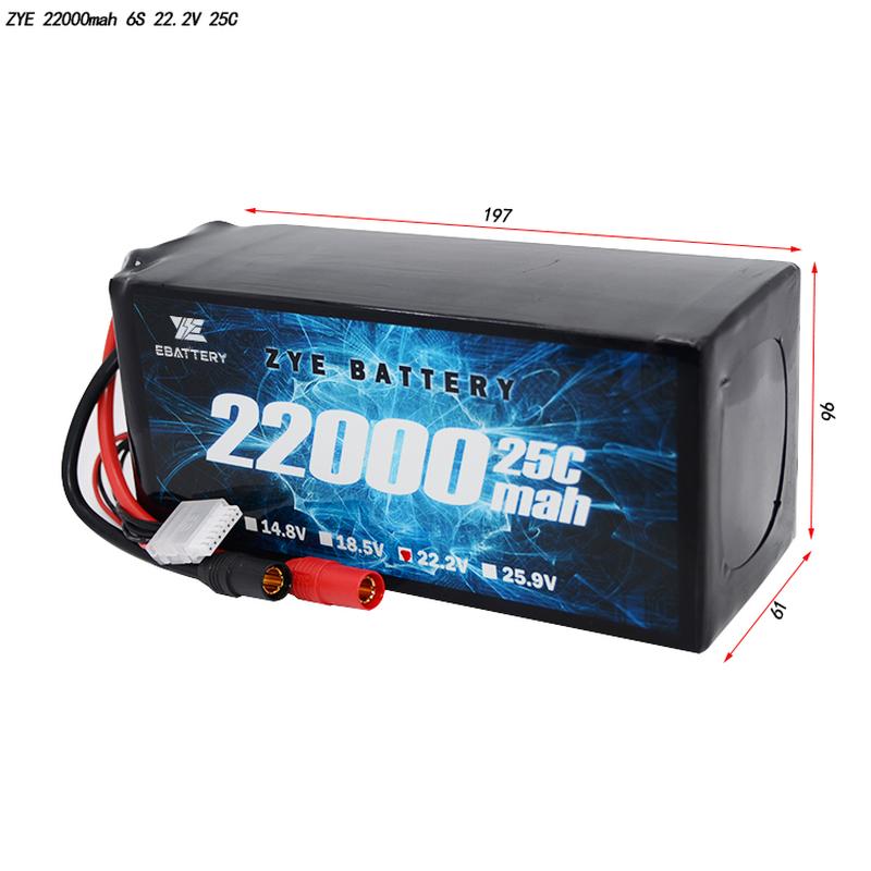 | 22000mAh | 6S 25.2V | 22.2V | 488wh | 200*91*63 | 2,54 кг | 264а (12в) | 550a (25c) |