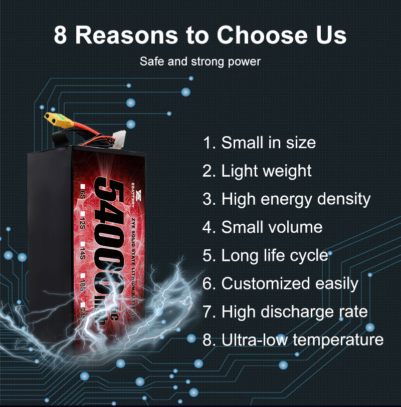 Нашата LI HV 54000mAh 6S твърда батерия отговаря на най-високите стандарти в индустрията, с усъвършенствани производствени техники, осигуряващи изключителна производителност и безопасност. Партнирайте с нас, за да издигнете вашите енергийни решения на следващото ниво.